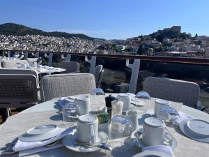 No reservations are required for the Compass Rose or Italian-themed Sette Mari restaurants, but the latter is smaller and therefore you need to arrive early if you want a table for dinner, especially on its veranda, which is lovely. It’s easier to get a table for the buffet-style breakfast or lunch and I’d definitely recommend sitting outside on a sunny day. In fact, one of my favourite moments of the week was lunch on the veranda under the shade of a parasol, after a fantastic but hot tour of ancient Ephesus, while gazing at Kusadasi, shimmering in the afternoon heat.